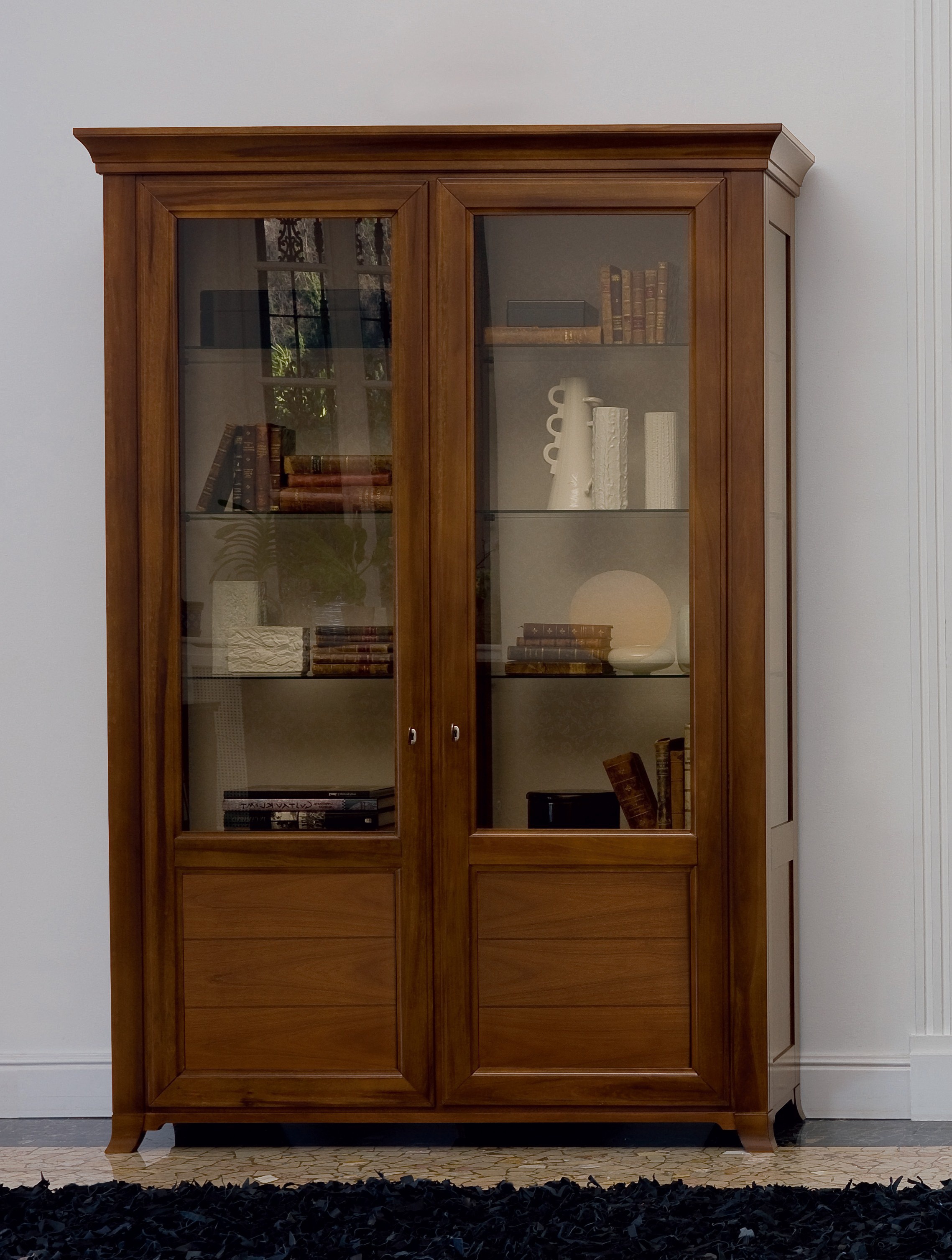 Sideboard from Italian manufacturer Bruno Piombini. Sideboard with two hinged doors, upper part glazed. The model is executed in classical style, natural wood color. Perfect for storing dishes.