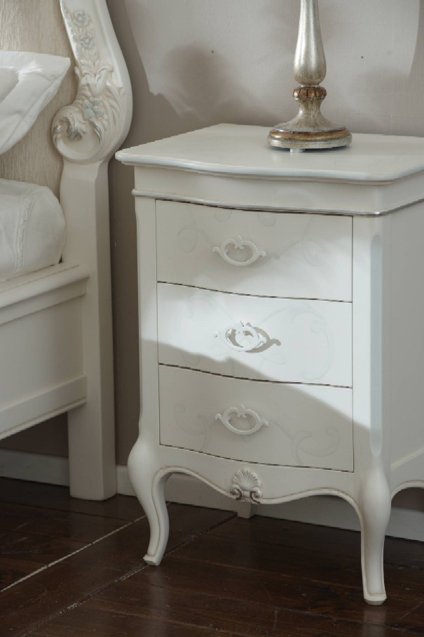 Bedside table from the Italian manufacturer Benedetti. The skeleton of the tables made of natural wood. Model color tables milk . Graceful legs add elegance to the model.Style classic.
