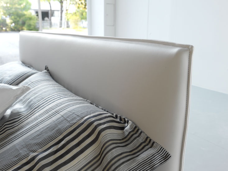 Double bed Gaya News from Italian manufacturer Bolzan. Model on low legs square shape. Material - solid wood. The body is fully covered textile white. The bed is manufactured in contemporary style. Perfectly fit and beautify the interior of your home.