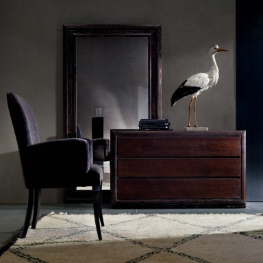 Chest of drawers from Italian manufacturer Bruno Piombini. The chest of drawers of rectangular shape made of wood. The model is equipped with three pull-out drawers. Model color is dark brown. A style classic.
