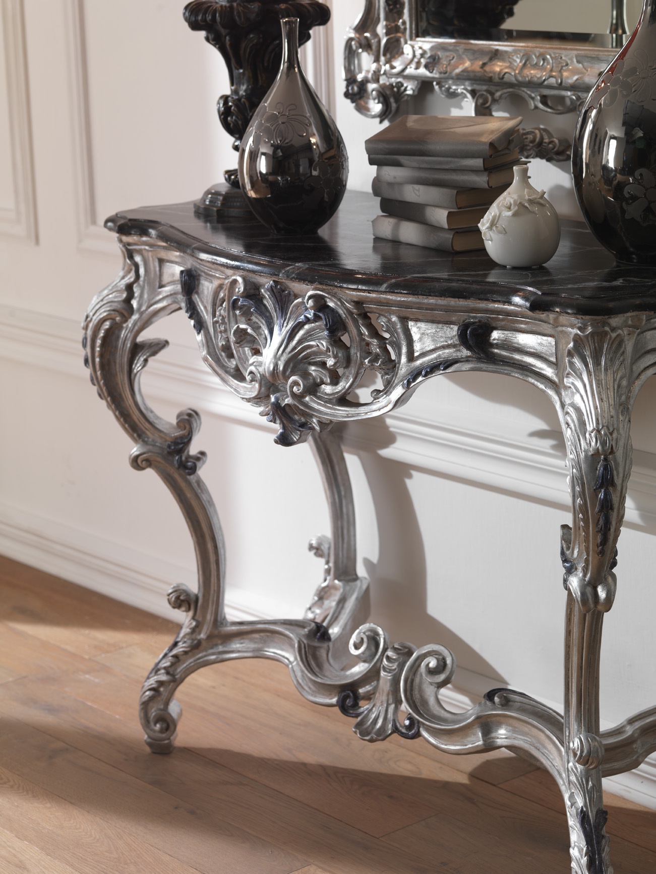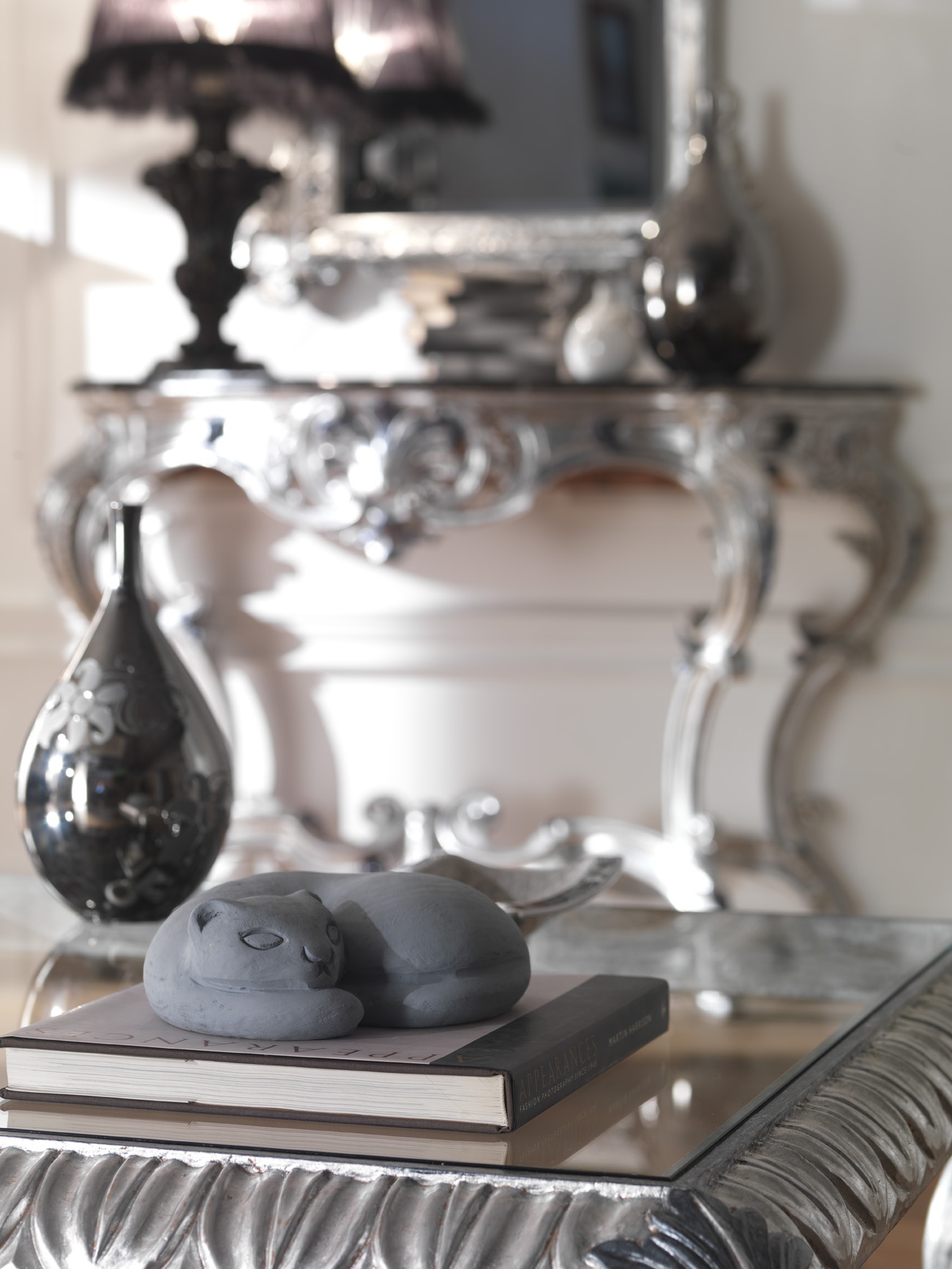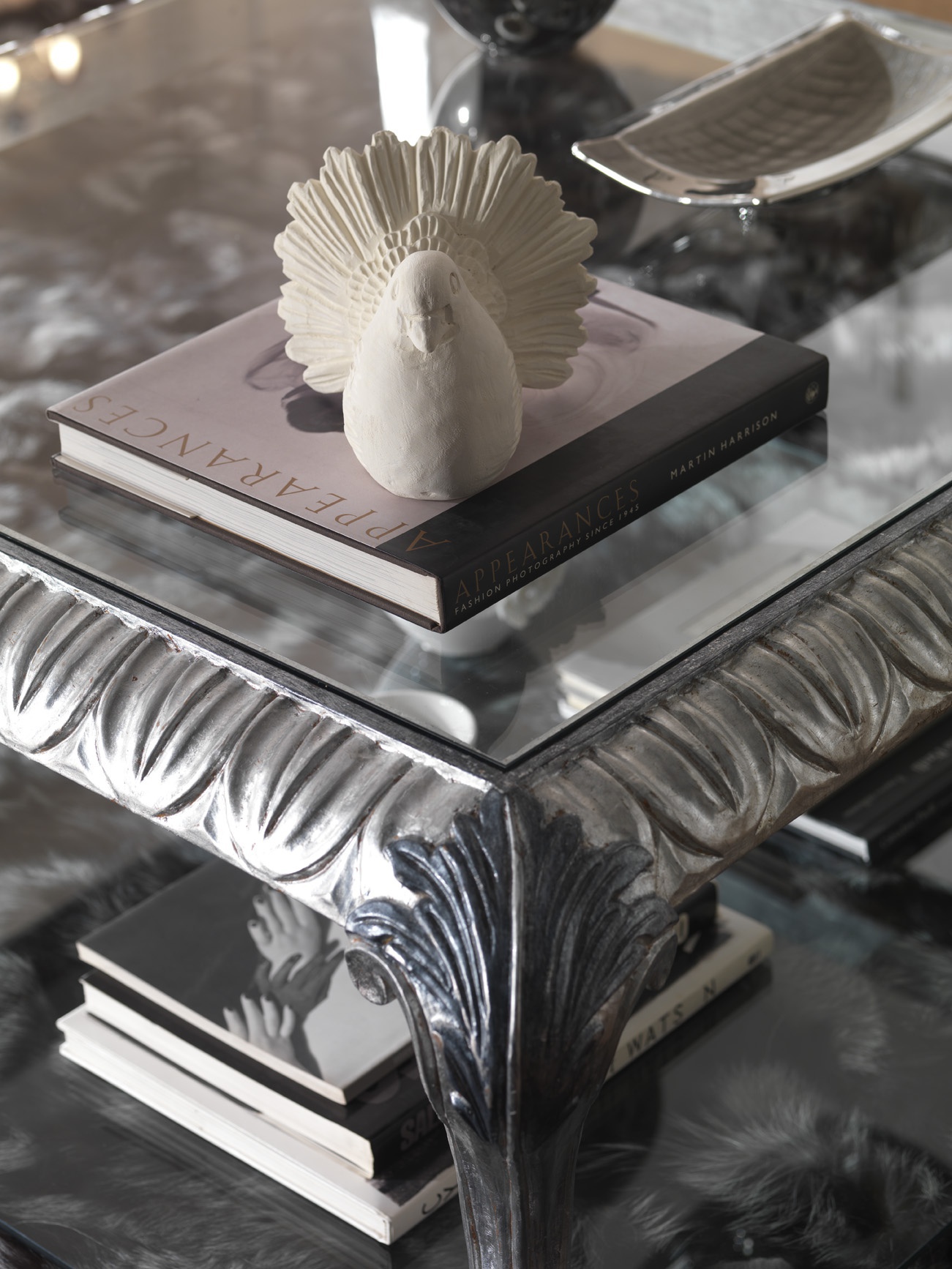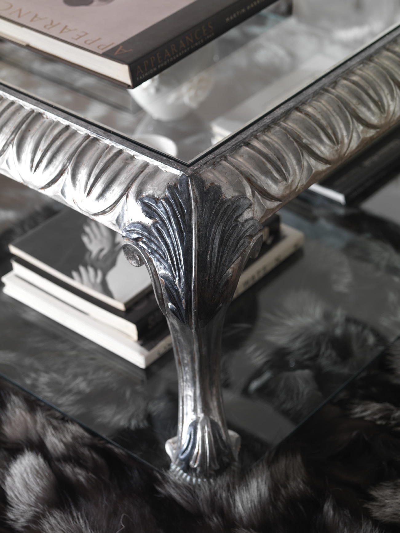 frame: natural wood top: glass frame: silver plated |