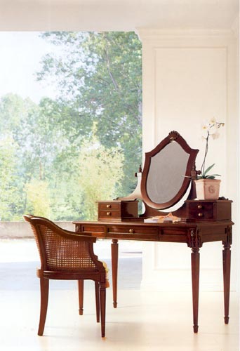Resole dressing table from the Italian manufacturer Cantaluppi. The model is made from natural wood. A table with drawers of different sizes and built-in mirror. A perfect choice for bedrooms in classic style. Product color natural wood.