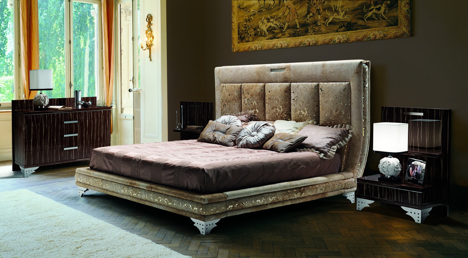 Headset Mars for bedrooms from Italian manufacturer Carpani. Set includes double bed, bedside tables and chest of drawers. Products made by hand, processed by experts who are experts in creating the exquisite furnishings. The secret of Italian furniture - it details, quality materials, exquisite processing technique, passed on from generation to generation.