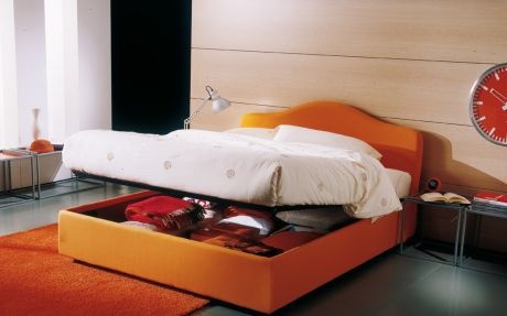 Bed Leslie from Italian manufacturer Bontempi Casa. Model with high headboard. In the Foundation frame of steel. A wide range of upholstery fabrics or leather gives an opportunity to choose the furniture for Your interior.
