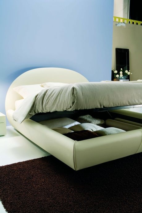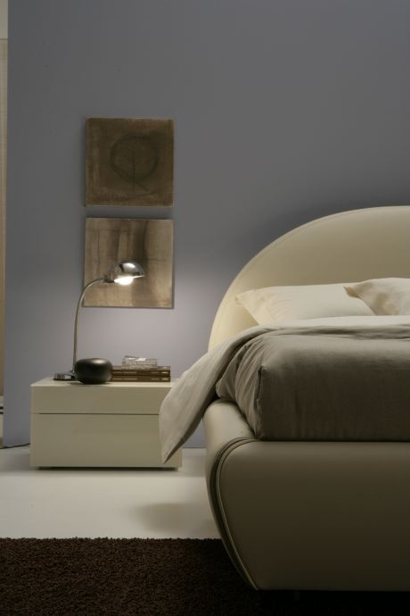 Neve bed from Italian manufacturer Bontempi Casa. The original round bed with high headboard and soft. The phone comes with a box for linen. In the Foundation frame of steel. As upholstery leather. Range of colors according to the catalog.