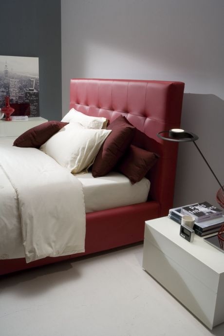 Peonia bed from Italian manufacturer Bontempi Casa. Compact bed with high headboard. The basis of the framework laid solid wood and steel. as upholstery leather. The model is executed in modern style.