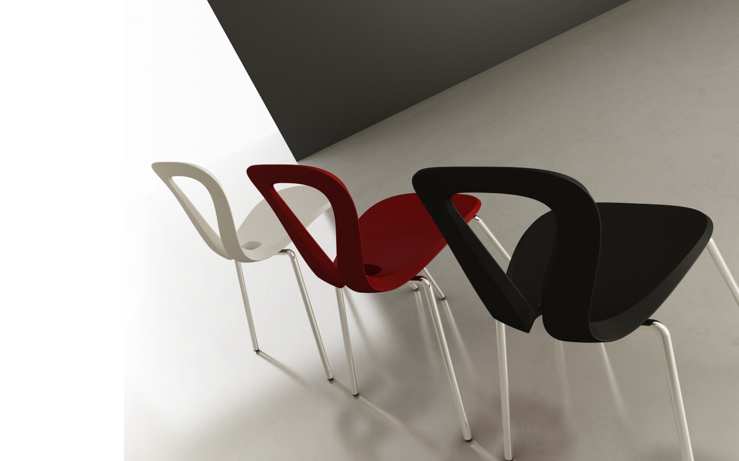 Chair with shaped back from the Italian manufacturers Ciacci. The model is made on a frame of chromed metal. Seat and back made of plastic. The finish is offered in white, red or black. The chair is designed in modern style. Is perfect to use in the house and the street.