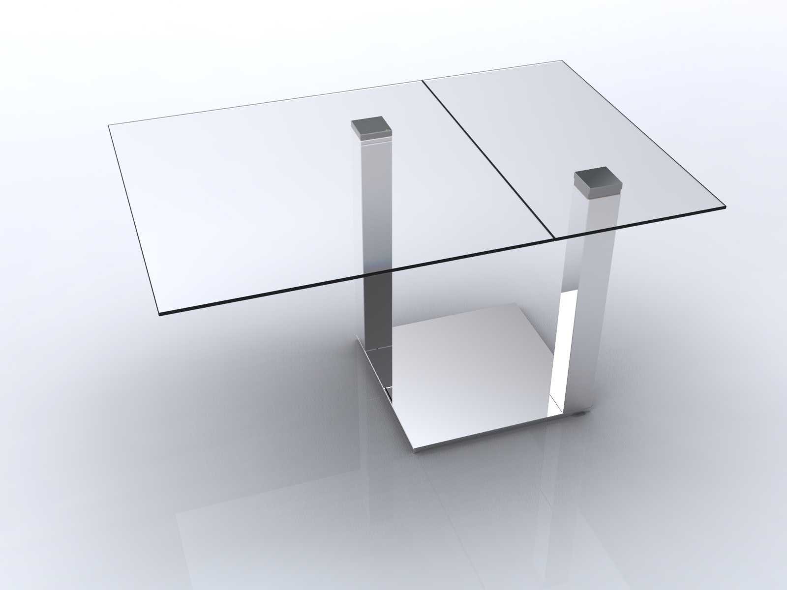Folding table from the Italian manufacturer Ciacci. The model is made in modern style. Legs and base are made of chromed metal. The tabletop glass. Complement the model pull-out top to increase the table surface. Characterized by elegance, modern details and durability.