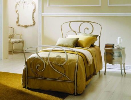 Genziana bed/S from Italian manufacturer Bontempi Casa. Single bed with footboard, wrought. The high, lacquered headboard laid metal frame. Treatment under the old. Performed in the style of fusion.