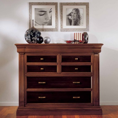 Headsets for bedrooms from Italian manufacturer the Corso. Consists of double bed, wardrobe, chest of drawers and bedside tables. Material - solid wood varnished. Finish to be selected from the range of the company. Decorative accessories made of metal. Set made in a classic style.
