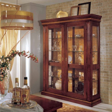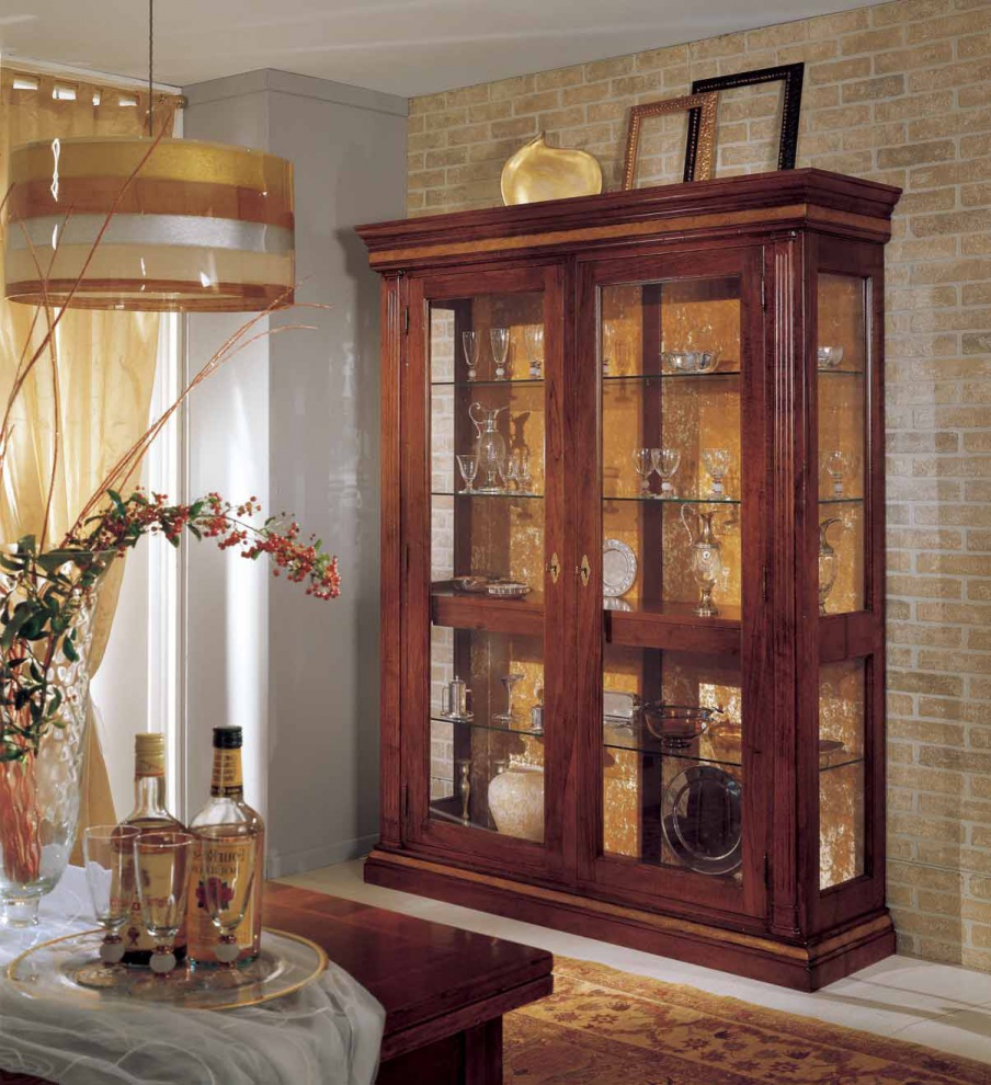 Showcase from the Italian manufacturer the Corso. Model made of solid wood. Fold panels of glass. Internal filling - glass shelves. Swing doors are locked. The model is decorated with hand-carved. Made showcase in classical style.