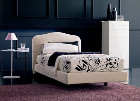 Giada bed from Italian manufacturer Bontempi Casa. Original model executed in modern style, with high, cushioned headboard. .For the frame is steel. For upholstery, textiles, or leather. Range of colors according to the manufacturer's catalogue.