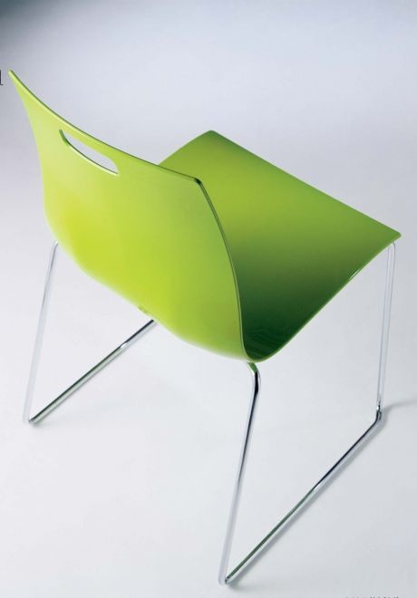 Ala chair from Italian manufacturer Bontempi Casa. The model applies to street furniture and furniture for public spaces. The base frame is made of metal, a seat made out of melamine. The back is made from metakrila.