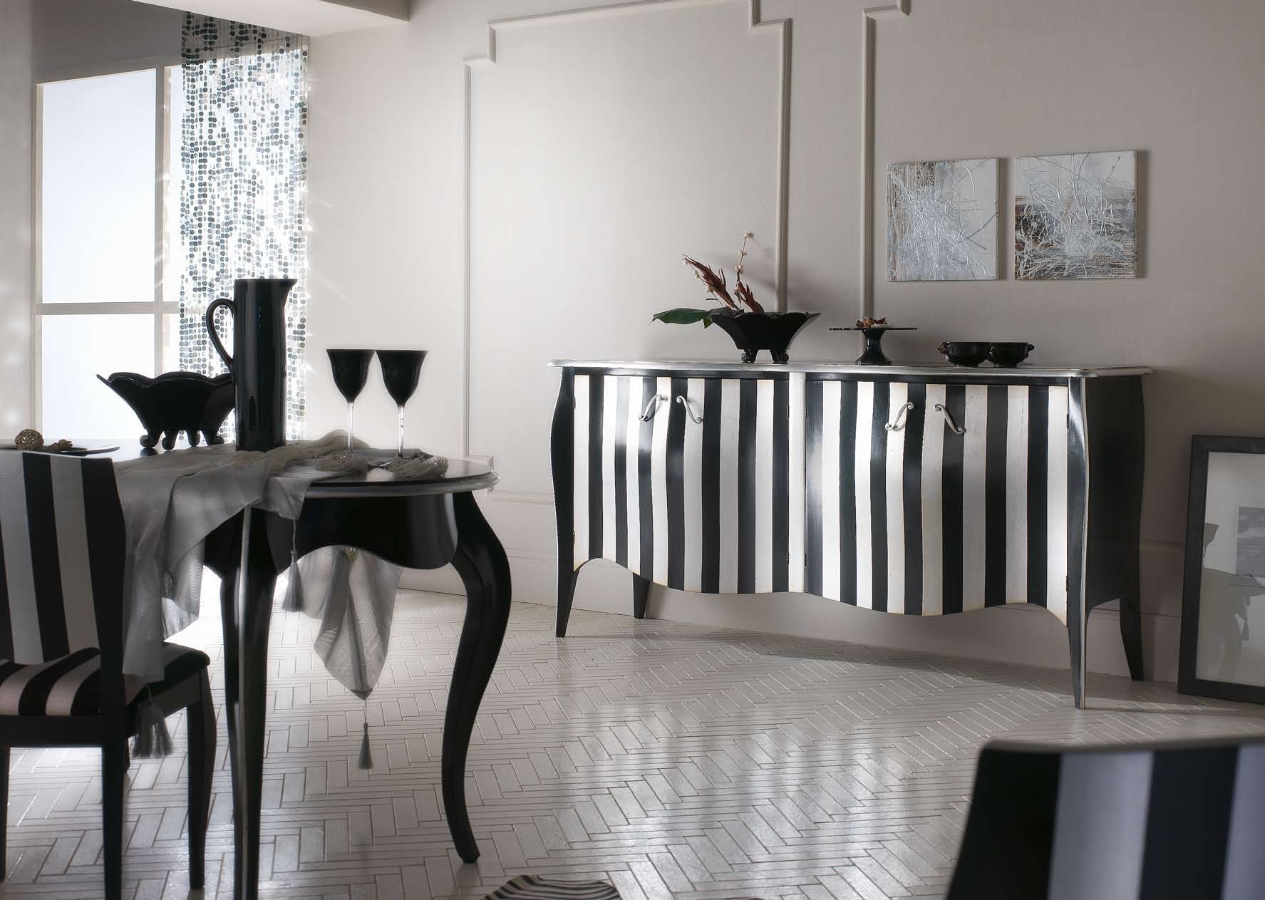 Set for the dining room from Italian manufacturer Domus Mobili. Set includes dining table, chair, chest of drawers. The furniture is made of solid wood. Top of table is glass. The upholstery - textiles from the company portfolio. Colours in stock.