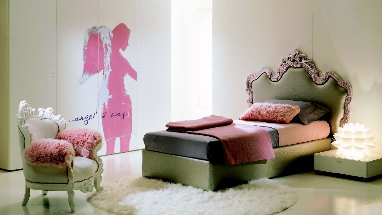 The bed is from Italian manufacturer, Di Liddo & Perego. The frame is made from solid wood in a leather upholstery. Single model with high and padded headboard. A chic choice for teen rooms in the style of glamour. The design of complementary decorative pillows. Colours in stock.