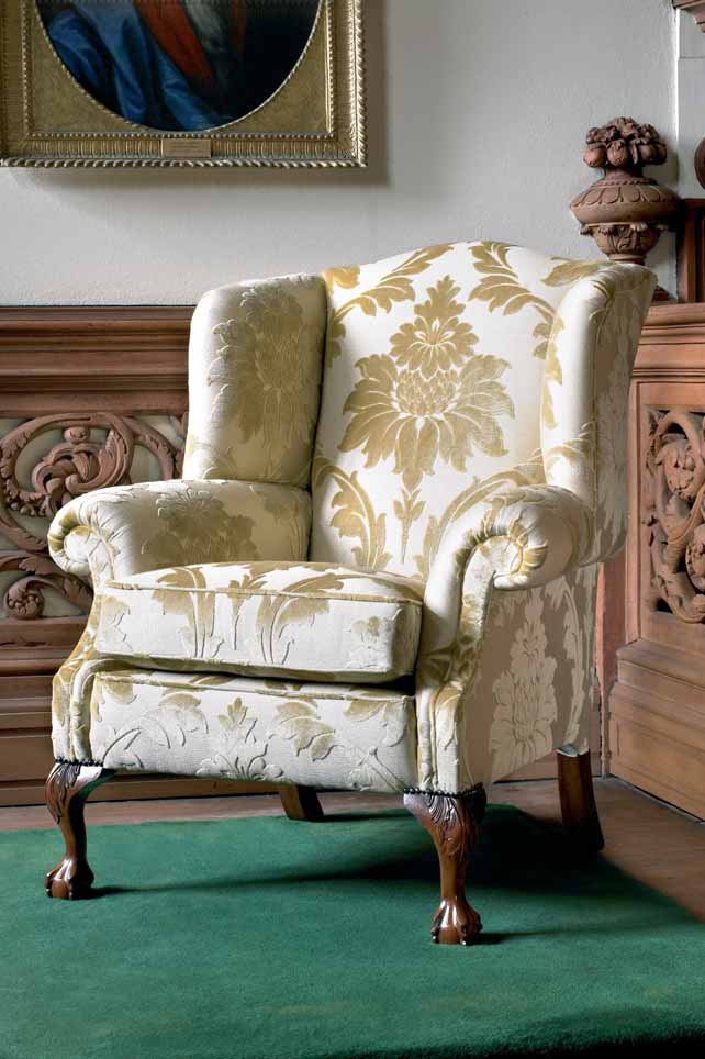 The Devonshire chair is from British company Duresta. The model will perfectly complement a classical interior, in the house will create a unique atmosphere of luxury and comfort. The company uses only the latest equipment and only natural materials. Frame made of hardwood. Filler - fluff. Upholstery fabric with exclusive author's pattern.