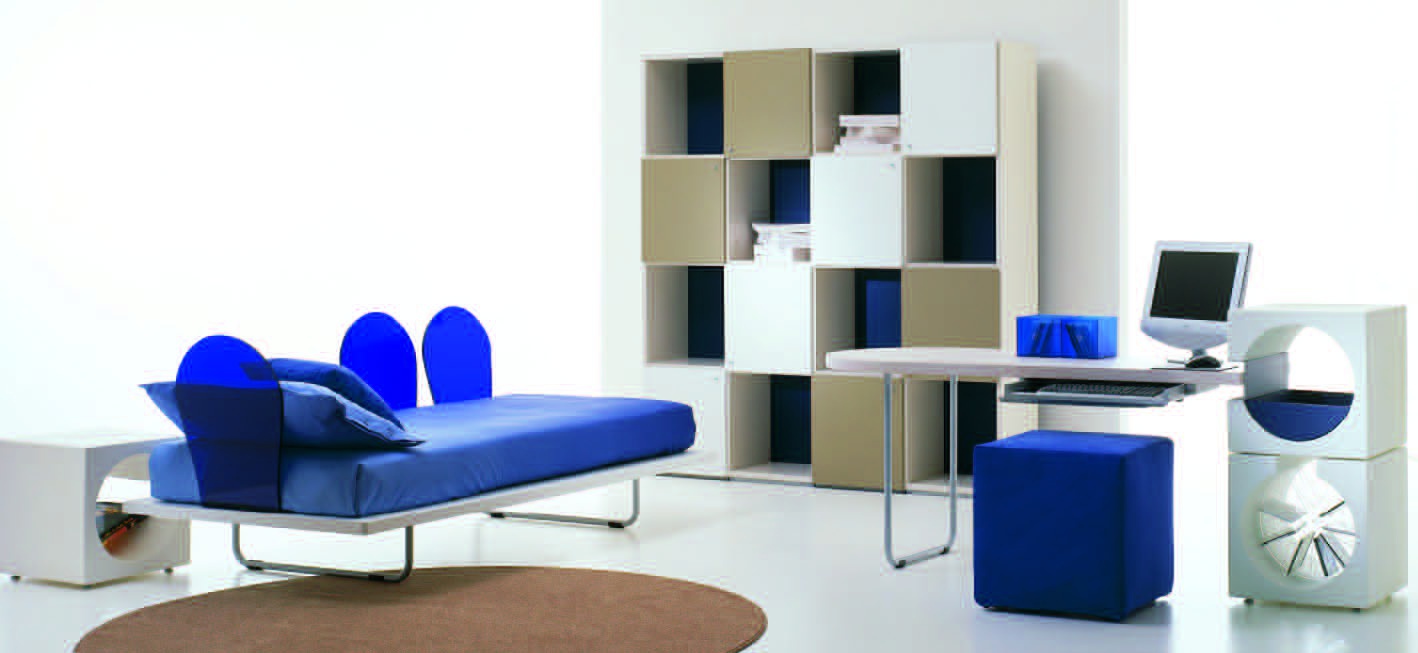 Set for teen rooms, bed, table, wardrobe, Di Liddo & Perego