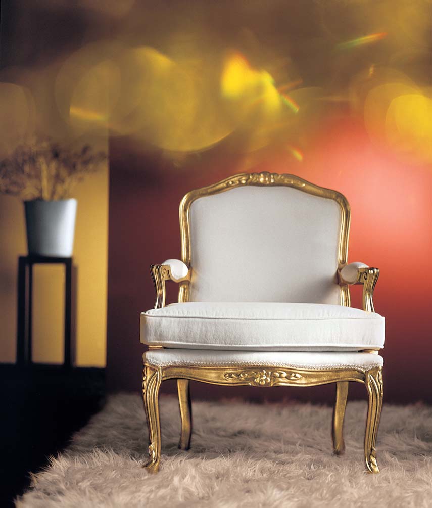 The Diana chair from the Italian manufacturer Formerin. The frame is made from solid natural wood in the decoration, the gilding, the seat filler - foam, upholstery - textiles from the company portfolio. The seat is removable. A great model for living room in classic style.