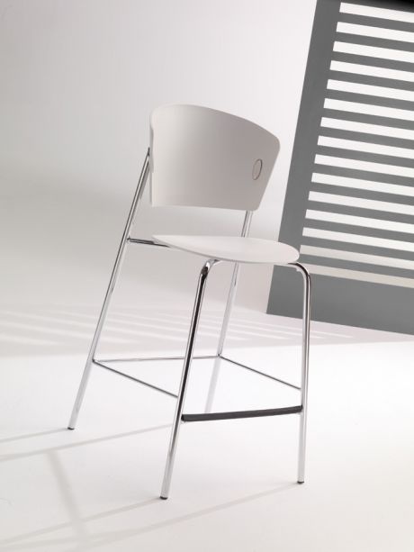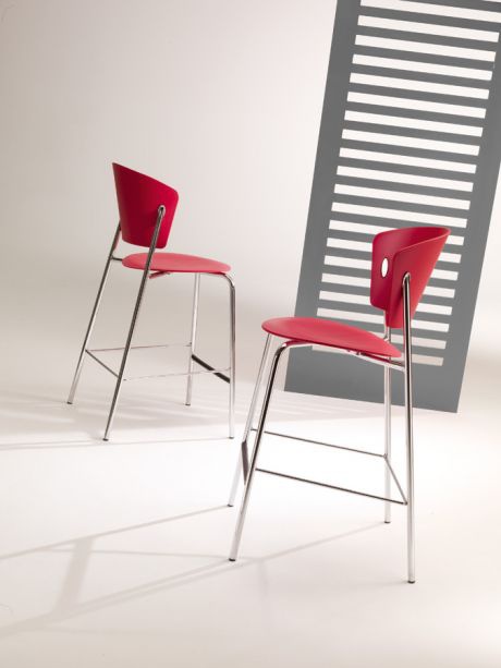 The Gio chair by Italian manufacturer Bontempi Casa. Bar stools with steel frame. Seat and backrest made of polypropylene and solid wood. The model comes in a contemporary style. Color according to the catalog.