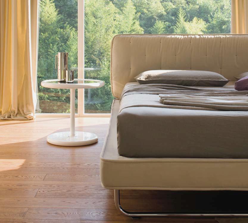 Double bed from Italian manufacturer Frighetto. Bed with upholstered headboard, the frame is made of metal. Functional and comfortable, transforming your interior into a comfortable living space.