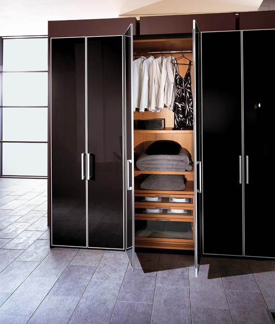 Wardrobe by Italian manufacturer Favero. The model consists of six offices. The frame is made of chipboard and solid wood. The finish is offered in white, red or black. Fittings made of metal. Filling the drawers and shelves for storage. Custom closet in a modern style.