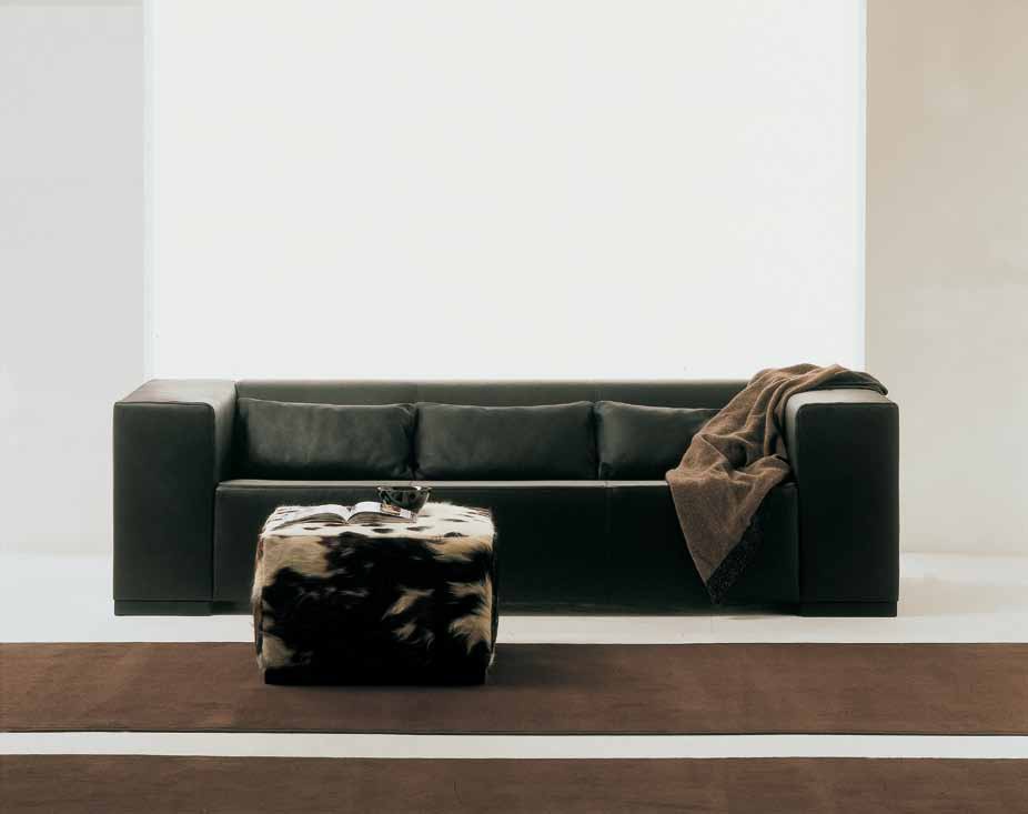 Three seater sofa from Italian manufacturer Gyform. Model with wide armrests, perfectly complement the modern interiors of your living room. The frame is made from solid wood and plywood. Upholstered in genuine leather any color and texture from the product range of the company. Filler - polyurethane foam. The design is complemented with decorative pillows.