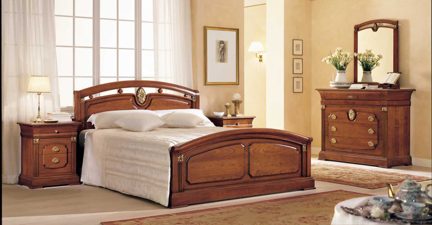 Headsets for bedrooms from Italian manufacturer Favero. Includes double bed, chest of drawers and two bedside tables. Frames made of solid wood. Set is made in a classic style.