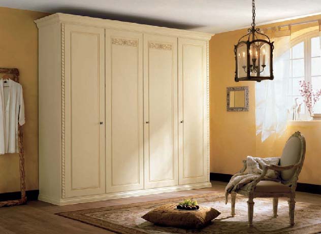 Headsets for bedrooms from Italian manufacturer Favero. Includes double bed, wardrobe, dressing table, chair and bedside nightstand. Material - solid wood. The finish is offered in white and natural wood color. Upholstery textile from the company portfolio. The metal fittings painted in Golden color. The model is made in classic style.