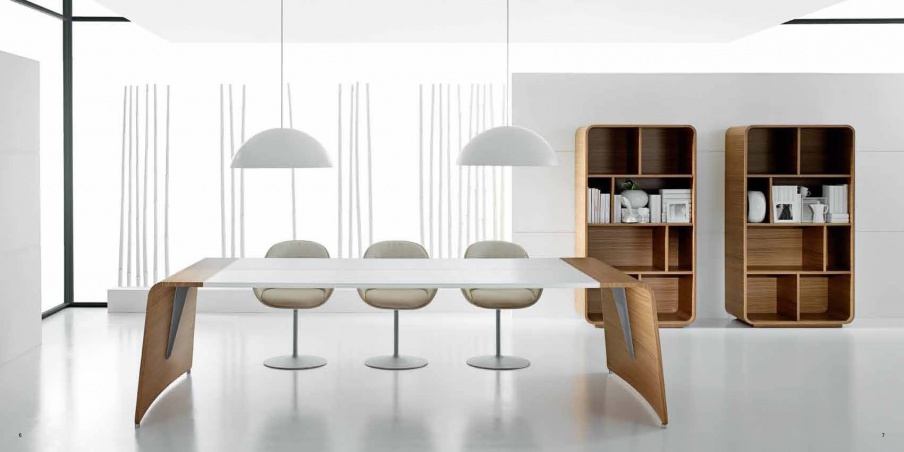 Set for the dining room from Italian manufacturer Ideal Form Team. Set includes dining table, bookcase and chair. The furniture is made of solid wood. Chair with upholstery. Colours in stock.
