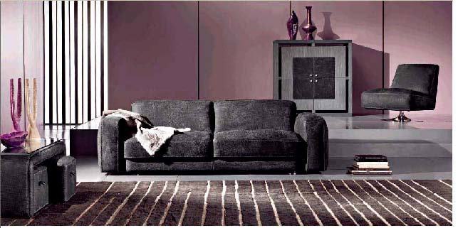 A double sofa from Italian manufacturer Gamma Aredamenti. Model on low metal legs. The frame is completely hidden. Two upholstery options leather or textiles from a range of companies. The cushion filling is foam. Made sofa in contemporary style. In addition offers decorative pillows.