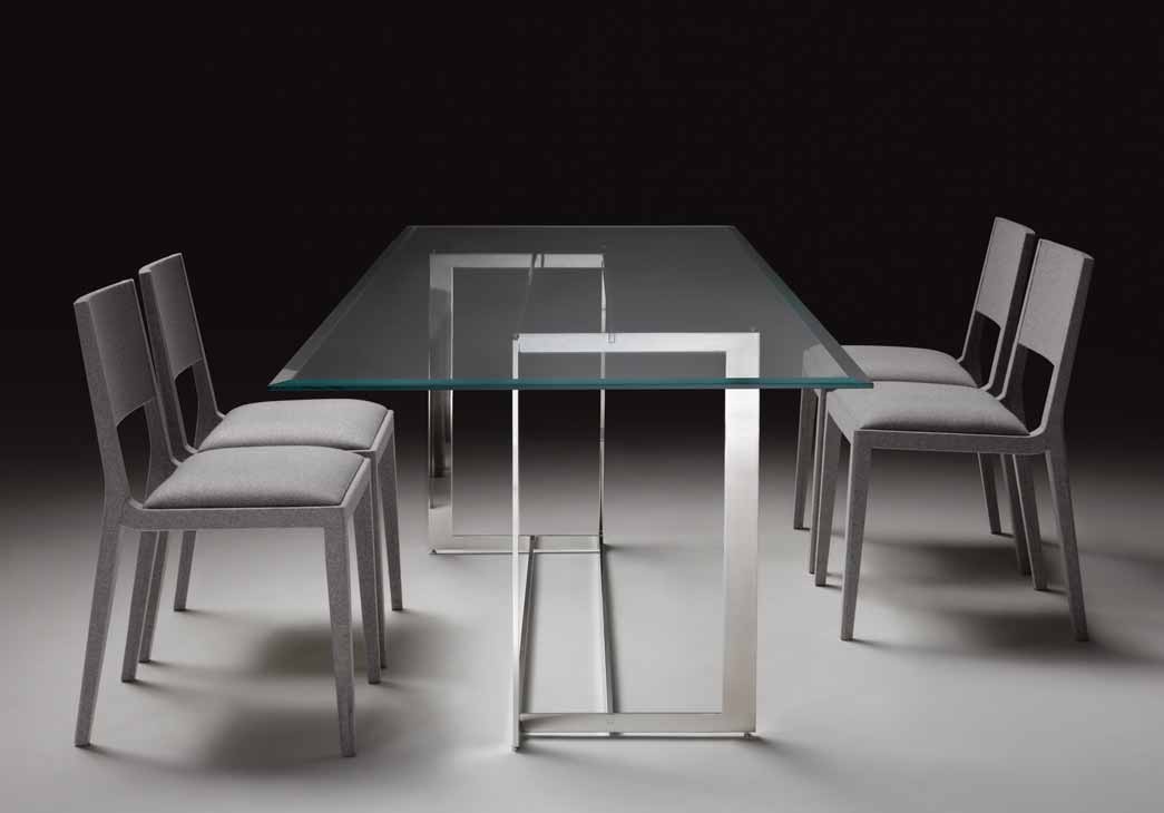 Set for the dining room from Italian manufacturer Klab Design. Set includes dining table and chair. The furniture is made of chrome plated steel and solid wood. Top of table is glass. The upholstery - textiles from a range of campaigns. Colours in stock.