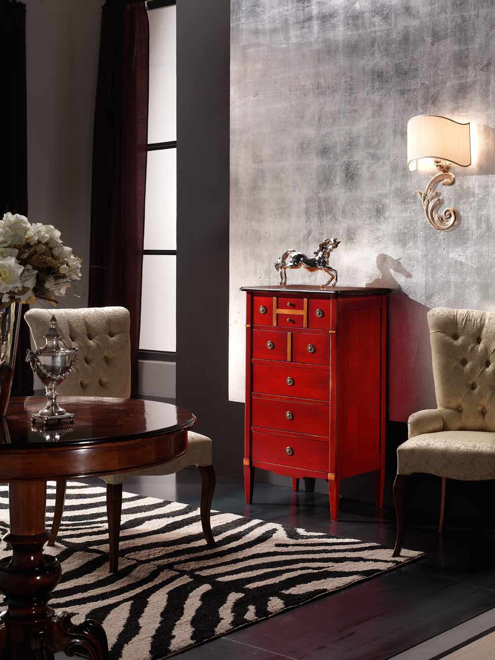 A chest of drawers from Italian manufacturer Arcari. The frame is made from solid wood. The model consists of drawers of different sizes. Decorative accessories made of metal painted in Golden color. A chest of drawers made in the classic style.