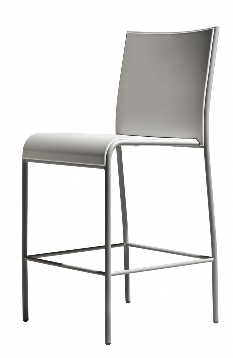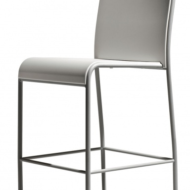 Bar stool from the Italian manufacturer Accademia. The frame is made of metal. Colors: white and gray. Augmented legs with plastic tips to prevent slipping. The model is made in a modern style and will perfectly complement the interior of the bar.