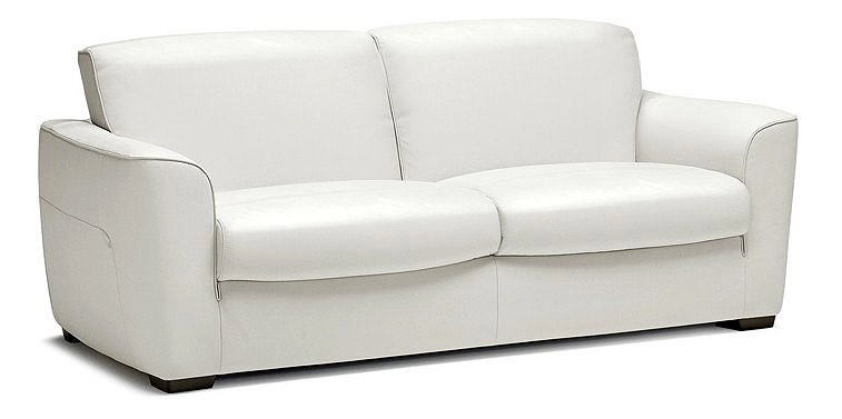 Sofa set Italian manufacturer Natuzzi. This headset presents the model of sofa, chair and Ottoman collection Armando. Two-seater sofa upholstered in leather. Color scheme in white tone.