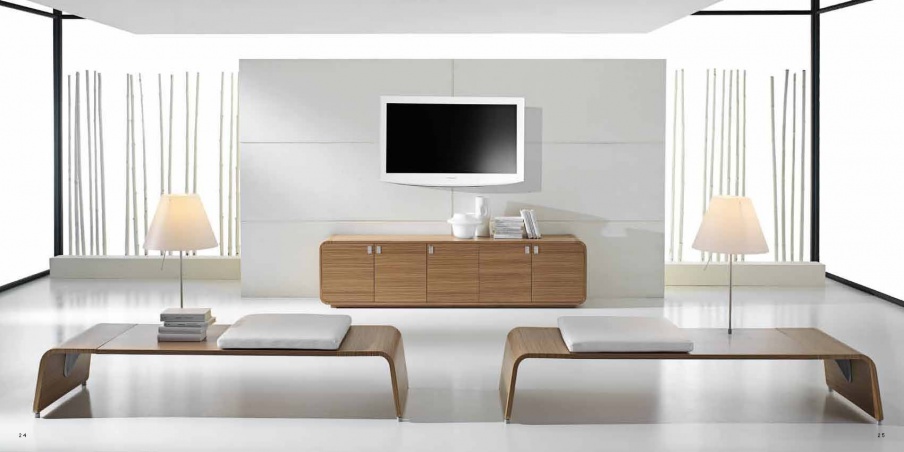 Sofa set from the Italian manufacturer Ideal Form Team. Set includes nightstand for the TV and coffee table. The furniture is made of solid wood. The color of natural wood products.