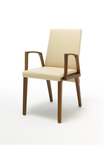 Set for the dining room from the German manufacturer Rolf Benz. Consists of dining table and chairs. Frames made of solid wood. Color finish of your choice from the product range of the company. The table-top of rectangular shape can be equipped with a sliding mechanism. Chairs in leather upholstery. Set is manufactured in contemporary style.