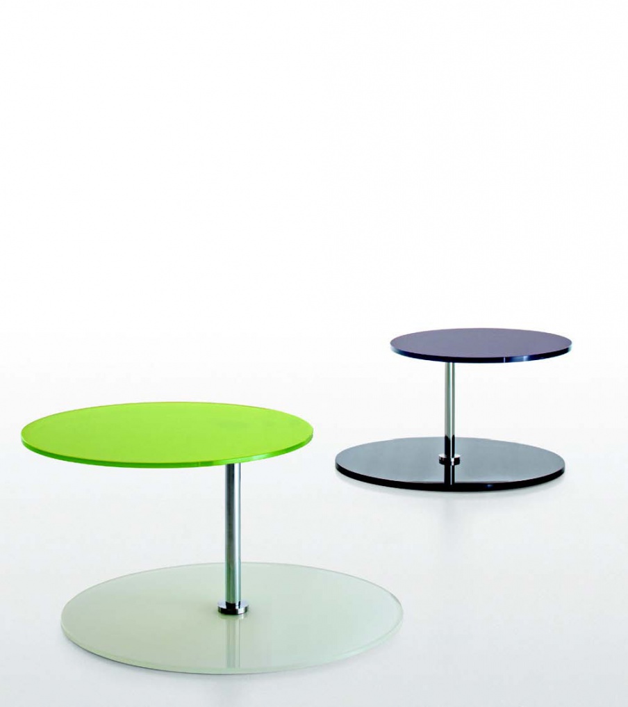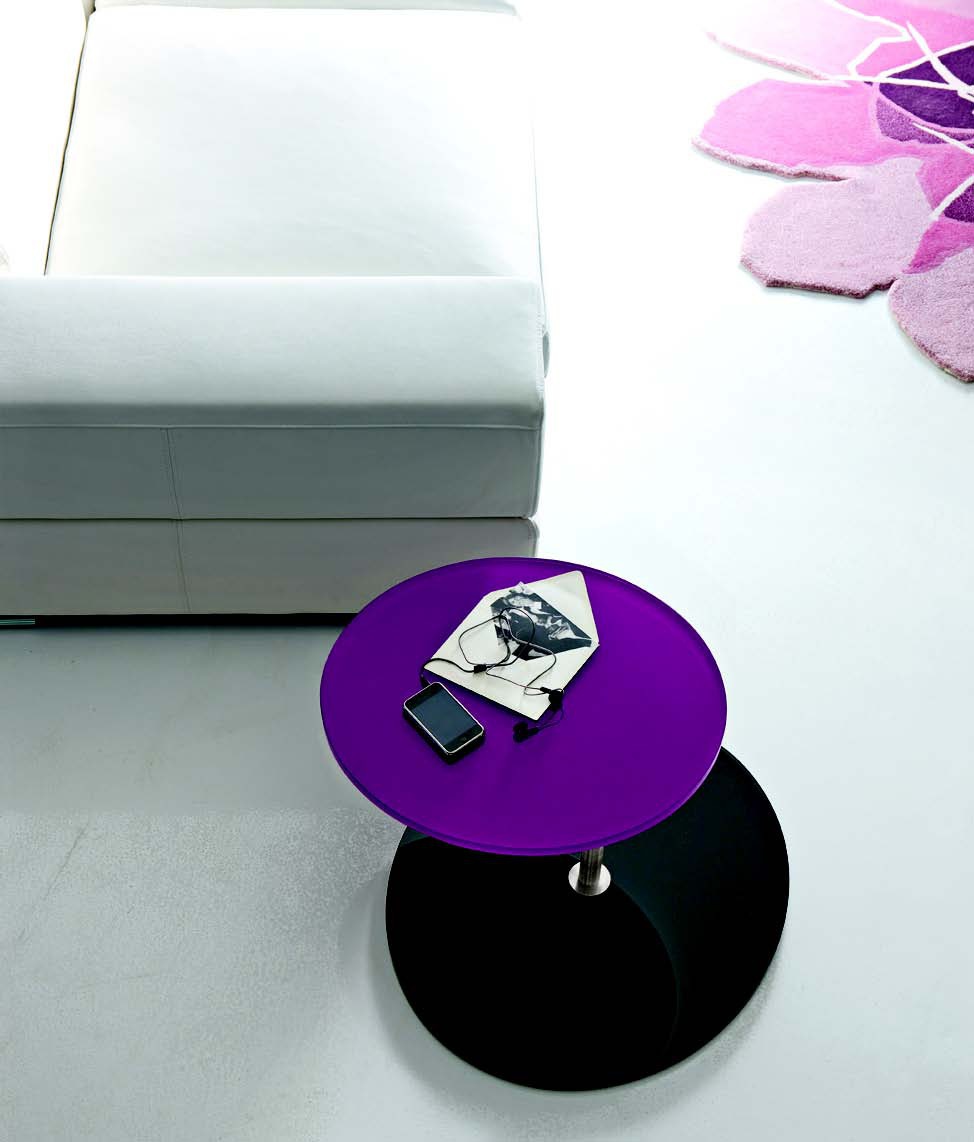Pridivanny table from the Italian manufacturer Glass&Glass. Base and top are made of glass, leg - metal. Model round shape. The product is designed for the living room in a modern style. Colours: purple, light green.