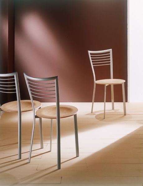 The Lena chair from Italian manufacturer Bontempi Casa. Comes with metal frame and seat in wood covered with leather. The model is executed in modern style. Color according to the catalog.