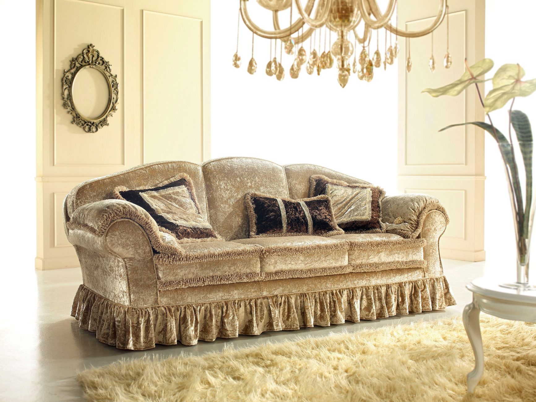 Capriccio sofa from Italian manufacturer Fasal Castelli. The frame is made from solid wood to fabric from a range of campaigns. The base is hidden a decorative "skirt". The seats are removable. The perfect choice for a living room in Baroque style. The design of complementary decorative pillows. Product color sand.