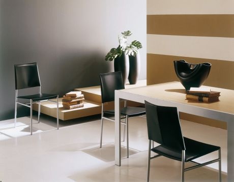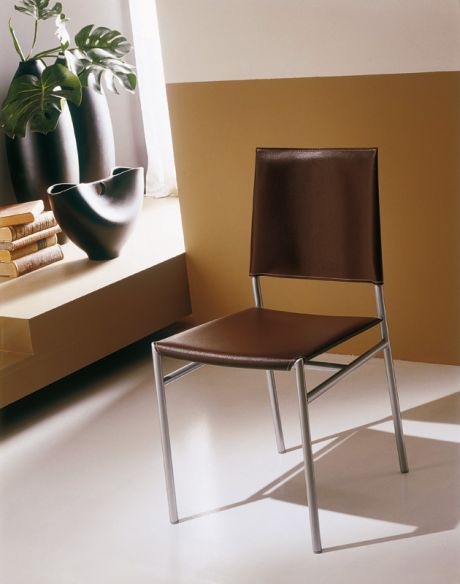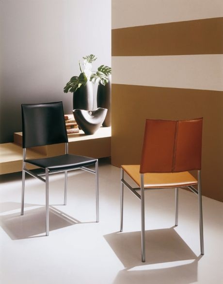 Meggy chair from Italian manufacturer Bontempi Casa. The chair is made with a frame made of metal. Back and seat upholstered in leather.. Model is executed in modern style. Manufacturer's colors.