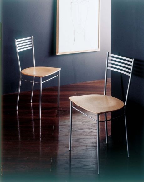 Ninfa chair from Italian manufacturer Bontempi Casa. Chair with upholstery. The basis of the framework laid the metal. The seat is made of wood and upholstered in leatherette. The model is presented in a contemporary style. On the metal chairs can be used in offices, homes, and interiors of bars and cafes.