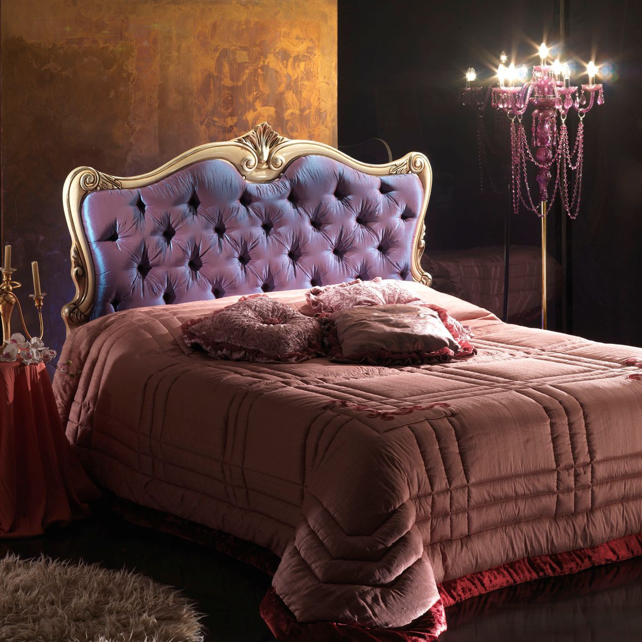 The King from the Italian manufacturer Fasal Castelli. The frame is made from solid natural wood, upholstery headboard - textiles from a range of campaigns. Finish options: carved/gilt. Model with high headboard is designed for bedroom in classical style. Colours in stock.