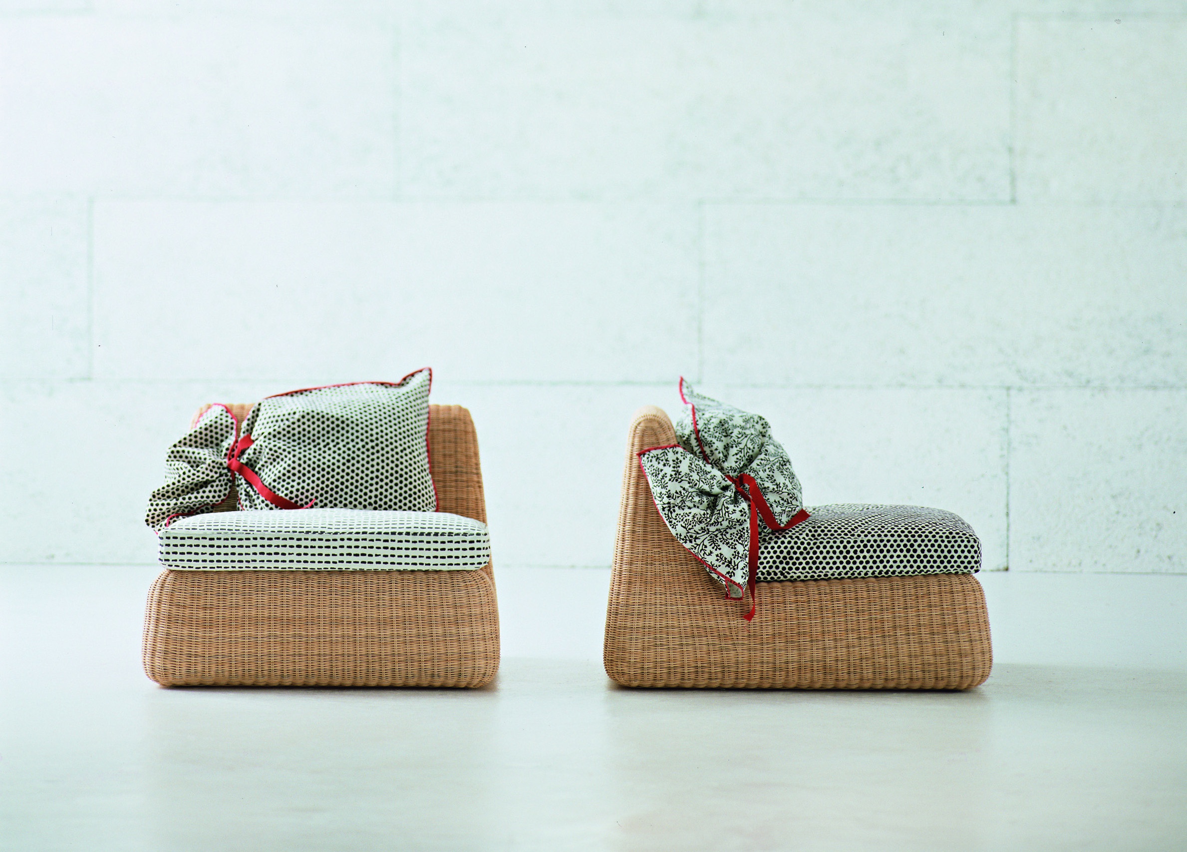 The side chair from Italian manufacturer Gervasoni. The model is made of solid wood. Decoration is a decorative netting. The seat is filled with soft polyurethane foam. Upholstery textile. In addition, it is proposed decorative pillow. A chair made in a contemporary style.