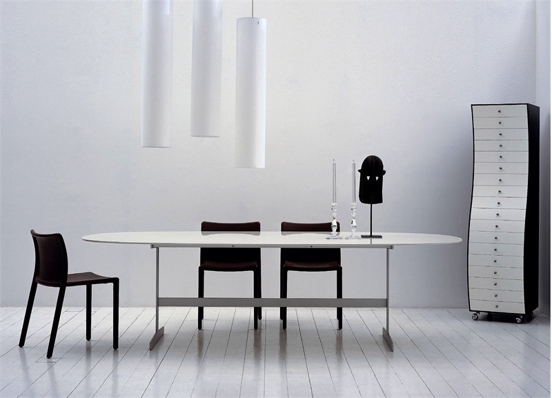 Set for the dining room from Italian manufacturer Cappellini. Consists of dining table and chairs. The frame is made of aluminum. The top oval is made of wood. Finish to be selected from the range of the company. Chairs from plastic. Color finish of your choice from the product range of the company. Set is manufactured in contemporary style.