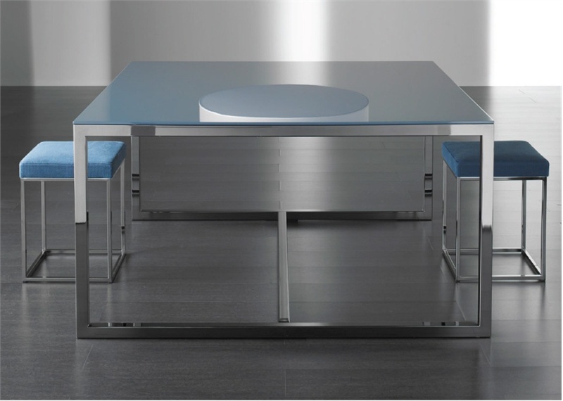 Set for the dining room from Italian manufacturer Meridiani. Set consists of dining table and chairs. The frame is made from metal, the table top is available in various versions: veneer wood, glass, gloss varnish. Good choice for dining room in modern style. Colors: transparent, black, natural wood color.
