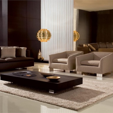 Sofa set from the Italian manufacturer CTS Salotti. Includes a sofa, armchairs and coffee table. The skeletons of the models are hidden. The legs are made from chromed metal. The rectangular tabletop of solid wood. Upholstery textiles. Colors offered are bright and dark shades. Filler - foam and feather. In addition offers decorative pillows. Set is manufactured in contemporary style.