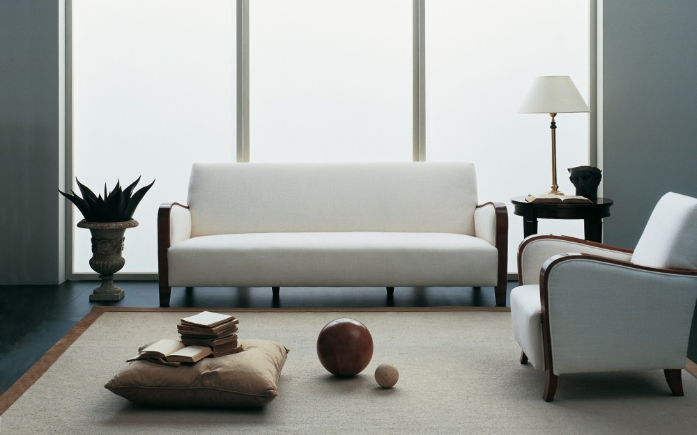 Set for living room by Italian manufacturer Annibale Colombo. Includes sofa and chair. Models with a hidden frame. The legs are made of solid wood. The finish offers a glossy varnish. Upholstery of textile leather or white colors from the company portfolio. The filler seat and back - polyurethane foam.