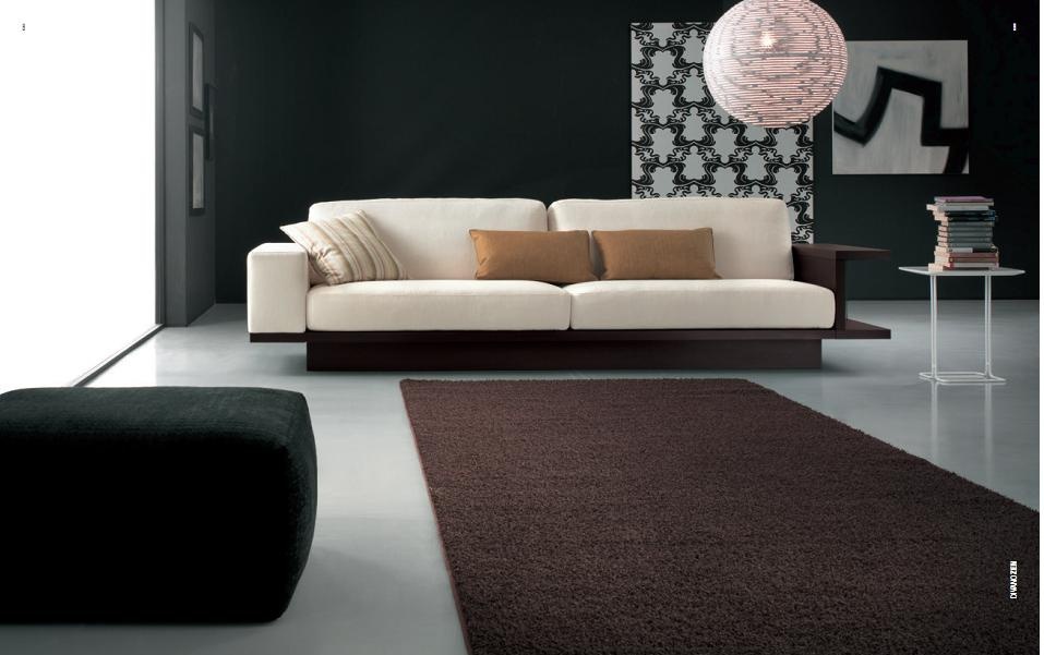Italian furniture for living room Alf production. Set includes: three-seater sofa and furniture for TV. The frame of the sofa is made from wood. Upholstery - textiles. Filler - polyurethane foam. The model is made with a side shelf for books and small items. The frame pedestals are made from wood. A lower recess is made with a glass dirceu. Finish - lacquer white or black. Set is made in modern style.