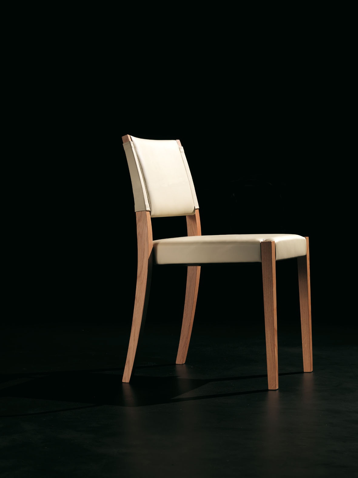 Chair with high back, from the Italian manufacturer Accademia. The frame is made of wood. Upholstered in textile or leather from the company portfolio. The finishing - varnish. Colors: brown and white. The model will perfectly complement the modern interior of the dining room.