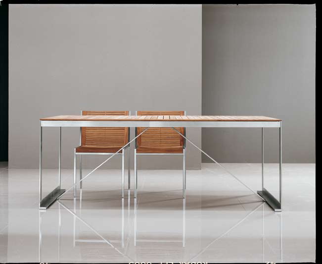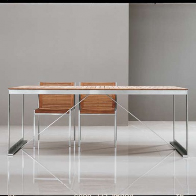 Dining table from the Italian manufacturer Lcc Italia. The model is made in a modern style. The frame and legs of chromed metal. The table-top of rectangular shape made from solid wood. Color finish offers the natural wood. The model perfectly fits and decorate the interior of your home.